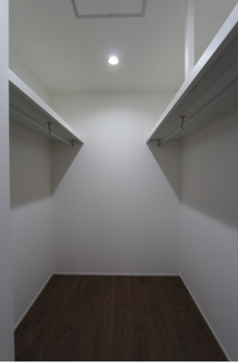 収納棚を置くスペースも十分あり、洗濯物干しにも使える空間です
