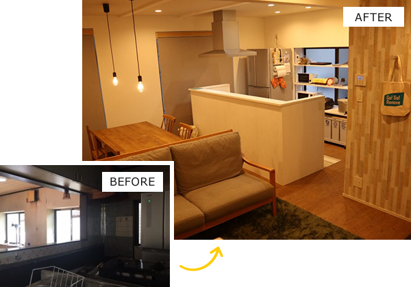 ご両親の近くで暮らしたいという想いから、中古物件を購入してリノベーション!もともと2世帯住宅で広いお家だったため、そのゆとりを活かして、家族みんなが快適に過ごせる間取りに仕上げました。自然光だけでも十分に明るく、日中は照明いらずの開放感たっぷりな空間が魅力です。ご家族のこれからの暮らしにぴったりな、明るく心地よいおうちが完成しました!