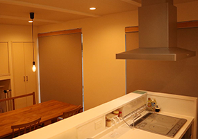 家事導線を重視したプランをご提案させていただきました。 洗濯機~サンルームの導線となっているため、洗う・干すの動作が一直線で完結します。 LDKには新しくタタミコーナーを作り、家事やお昼寝をしていても 家族の気配が感じられるようになっています。